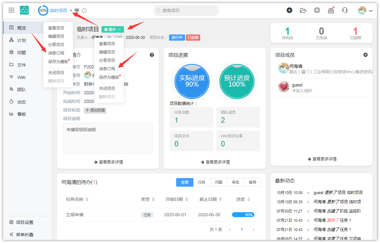 如果您想实时了解项目的最新进展情况,可以使用消息订阅功能,订阅了项目的消息后,当发生进度变更、信息修改、文件上传等事件,您将可以收到手机消息推送或邮件抄送。